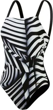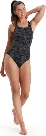 Damen Hyperboom Allover Medalist Badeanzug, Schwarz/Grau, 34