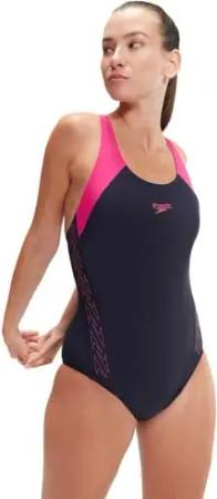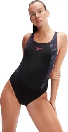 Damen Hyperboom Splice Muscleback Swimsuit | Classic Design | Quick Drying | Training | Fitness | Chlorine Resistant Badeanzug, Schwarz/Electric Pink/USA Charcoal, 58