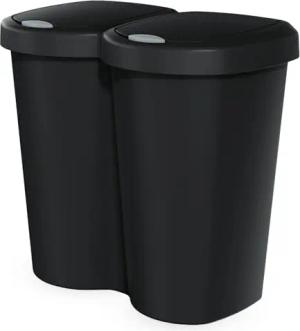 Duo Mülleimer schwarz mit Push Deckel - 40 L - Müll Sammler Trenner Behälter Deckel