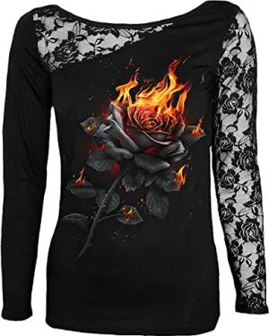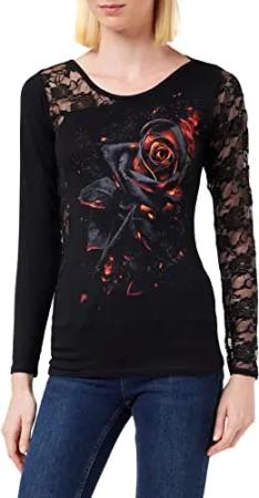 Gothic Langarmshirt - Flaming Rose - S bis XXL - für Damen - Größe XL - schwarz