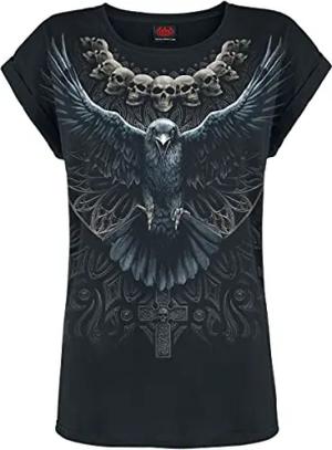 Gothic T-Shirt - Raven Skull - S bis XXL - für Damen - Größe L - schwarz