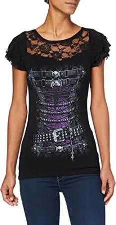 Gothic T-Shirt - Waisted Corset - S bis 4XL - für Damen - Größe L - schwarz