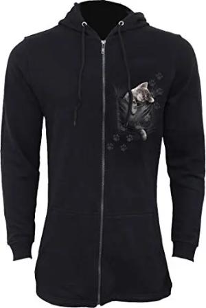 Pocket Kitten - Damen Hoodie mit durchgehendem Reißverschluss & Schwalbenschwanz - Ärmel mit Reißverschluss - L