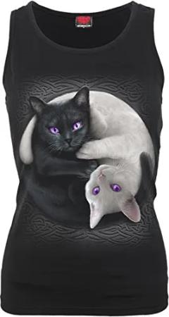 Yin Yang Cats Frauen Top schwarz XL 100% Baumwolle Casual Wear, Katzen