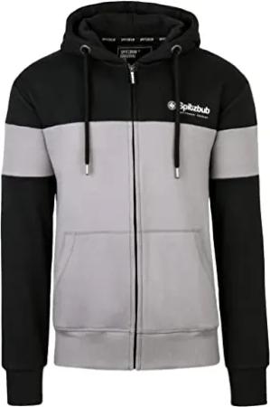 Herren Sweatjacke Hooded Zip mit Kapuze Kapuzenpullover Sports Sweatjacke in Grau mit Armapplikation in Grau Schwarz (as3, Alpha, m, Regular, Regular)