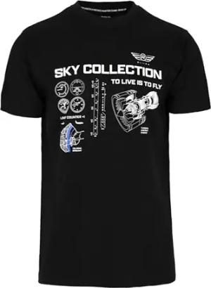 Herren T-Shirt – Schwarz | Hochwertiger Aviation Print | Ärmelpatch & Signature Label | 100% Baumwolle | Regular Fit (DE/NL/SE/PL, Alphanumerisch, S, Regular, Regular)