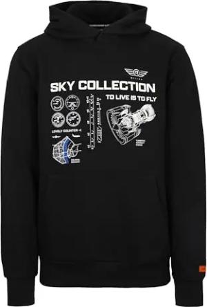 Hoodie Schwarz – Unisex Kapuzenpullover Regular Fit | Großer technischer Frontprint, gewebtes Ärmelpatch & orangenes Label (DE/NL/SE/PL, Alphanumerisch, S, Regular, Regular)