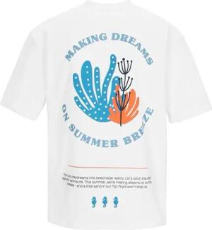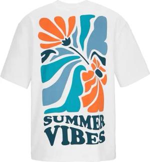 Oversized T-Shirt Herren – Weiß – Sommerlicher Rückenprint & dezenter Frontprint – 100% Baumwolle – Superweicher Jersey (DE/NL/SE/PL, Alphanumerisch, XL, Regular, Regular, Weiß)