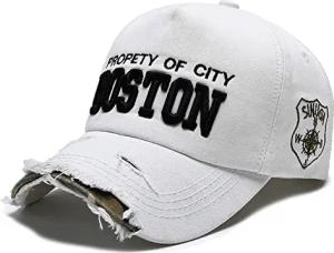 Baseballcap Boston Distressed Snapback Vintage Used Look Retro Oldschool Kappe Mütze Cap Schirmmütze Basecap verstellbar (weiß)