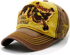 Baseballcap Fight Skull Distressed Snapback Vintage Used Look Golf Sport Outdoor Kappe Mütze Cap Schirmmütze Basecap verstellbar (gelb)