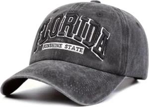 Baseballcap Florida Original Vintage Style Used Washed Look Retro Outdoor Kappe Mütze Cap Schirmmütze Basecap verstellbar (Schwarz2)