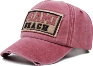 Baseballcap Miami Beach Florida Vintage Style Cap Herren Damen (DE/NL/SE/PL, Alphanumerisch, Einheitsgröße, Rot)