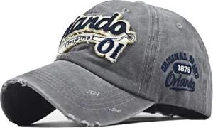 Baseballcap Orlando Original Vintage Style Used Washed Look Retro Outdoor Kappe Mütze Cap Schirmmütze Basecap verstellbar (Grau)