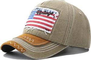 Baseballcap U.S.A. Flag Fahne USA Vintage Style Used Washed Look Retro Amerika Kappe Mütze Cap Schirmmütze Basecap (Khaki)