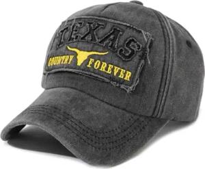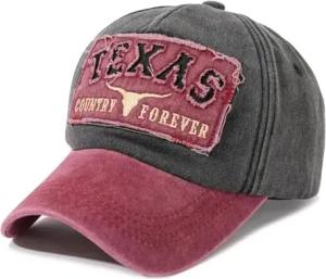 Vintage Baseballcap im Western-Stil, Texas Cowboy Rodeo Design, Used-Look (DE/NL/SE/PL, Alphanumerisch, Einheitsgröße, Schwarz/Rot)