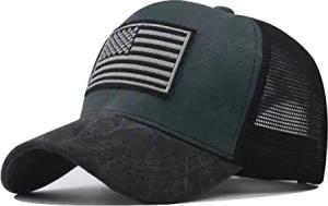 Trucker Mesh Baseballcap U.S.A. Flag Fahne USA Vintage Style Used Washed Look Retro Amerika (Army Green/schwarz)