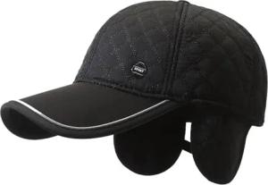 Winter Baseballcap mit Ohrenklappen Herren Schirmmütze Ohrenschutz Wintercap Cap (Schwarz)