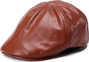 Zeitungsjunge Kunstleder Cap Mütze Baskenmütze Newsboy Biker Baret Schiebermütze Flat Cap Cabbie Sportflatcap (Hellbraun)
