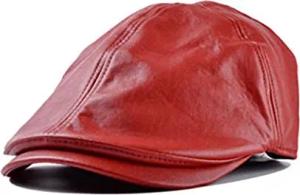 Zeitungsjunge Kunstleder Cap Mütze Baskenmütze Newsboy Biker Baret Schiebermütze Flat Cap Cabbie Sportflatcap (rot)