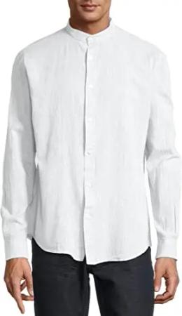 Classy Gentleman Herren Hemd Stehbund Leinen-Mix
