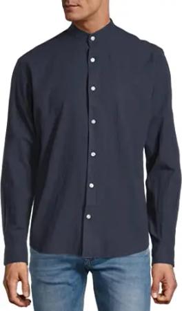 Herren Hemd Stehbund Leinen-Mix