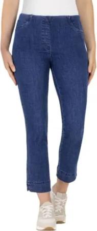 Maria-530, stretchige Caprihose bis zum Knie seitlich gerafft Größe 34, Farbe Jeansblau