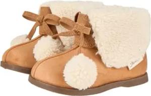 Baby Mädchen Mütze - Inka Rautenmuster - mit Ohrenklappen, Bommel und Glitzer - braun, 49