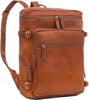 'Santino' Vintage Leder Rucksack Groß - Daypack Cityrucksack Echt Leder Arbeitsrucksack Bürorucksack mit Laptopfach 15.6-16 Zoll Reiserucksack Damen & Herren, Farbe:kara - cognac