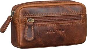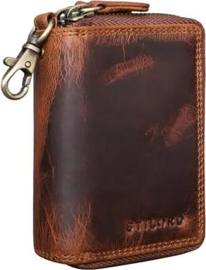 'Neal' Schlüsselbörse Leder Schlüsseletui Herren Damen mit Schlüsselanhänger Kleine Schlüsseltasche RFID mit Geschenkbox, Farbe:Porto - Cognac