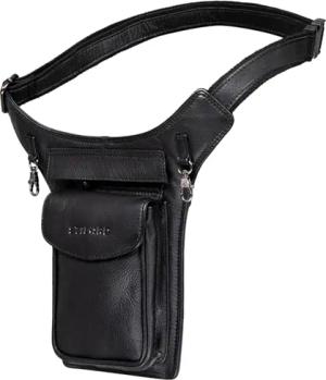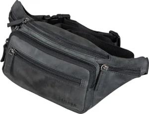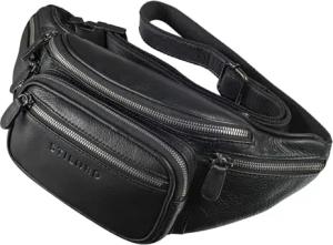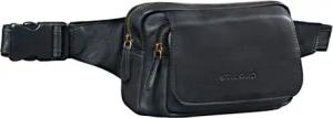 'Boston' Gürteltasche Leder Schwarz Vintage Bauchtasche Männer Frauen Hüfttasche für Kamera Jogging Reise Festival Sport Doggy Bag Echtleder
