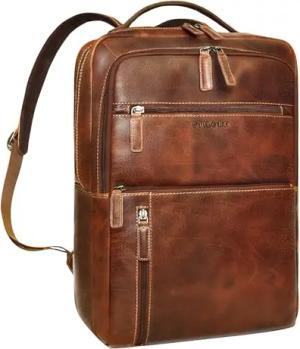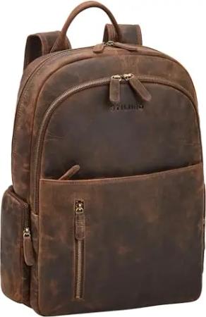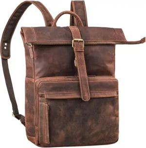 'Watson' Laptop Rucksack 15.6 Zoll Leder Backpack Business Lederrucksack Herren Rucksack XL für Breite DIN A4 Ordner Tagesrucksack Vintage Echtleder, Farbe:maraska - braun
