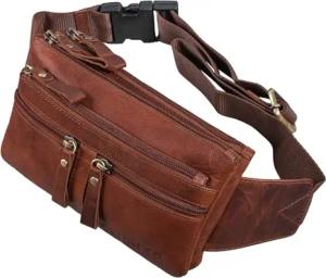 große Leder-Bauchtasche braun - Vintage Gürteltasche für Herren, Damen & Kinder - Retro Hüfttasche für Jogging, Festival, Urlaub 'Caspar'
