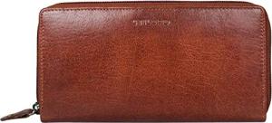 'Lorelai' Portemonnaie Damen Leder Groß Frauen Geldbörse Reißverschluss Vintage Portmonee Quer Elegant und Stilsicher, Farbe:Milano - braun