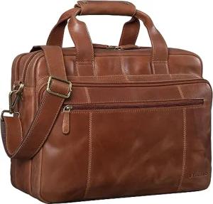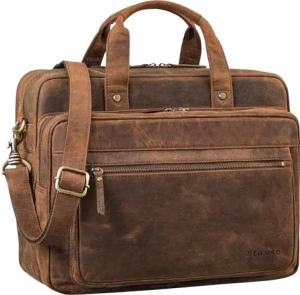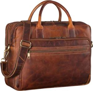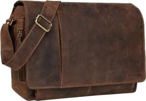 'Elias' Echtleder Umhängetasche 15.6 Zoll - der verbesserte Klassiker - Vintage Lifestyle 2.0, Farbe:calais - braun