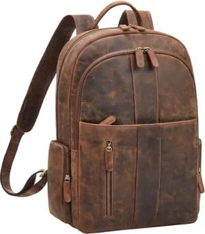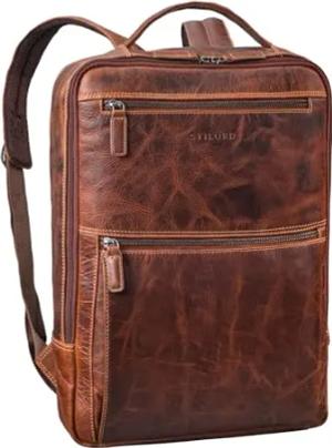 'Brad' Leder Laptoprucksack 15,6 Zoll Vintage Business Rucksack Herren Damen Lederrucksack Groß für Arbeit Büro Reisen Hochwertiger Moderner Daypack Echtleder, Farbe:luino - braun