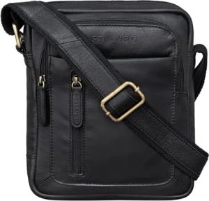 'Ragnar' Kleine Umhängetasche Herren Leder Herrenhandtasche zum Umhängen Schultertasche Männer Tablet Tasche Messenger Bag Tasche klein Echtleder, Farbe:schwarz