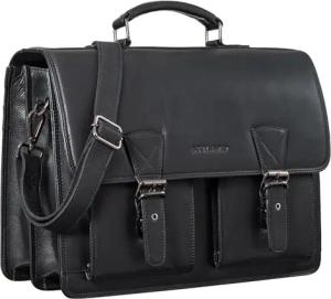 Herren-Businesstasche aus Leder schwarz - große 15,6 Zoll Laptoptasche - Männer-Aktentasche - Vintage Umhängetasche aus Rindsleder 'Walt'