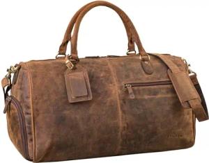 'Myles' Vintage Reisetasche Herren Leder Weekender zum Umhängen Overnight Duffle Bag Großes Reisegepäck XL echtes Rindsleder, Farbe:Kreta - braun