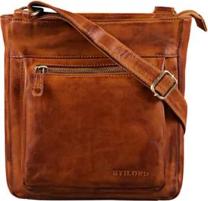 'Cecilia' Kleine Umhängetasche Damen Elegante Handtasche Schultertasche Crossbody Bag Ausgehtasche Vintage Echtleder, Farbe:cognac - used
