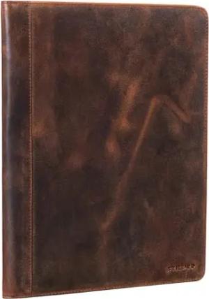 'Malcolm' Leder Schreibmappe A4 Vintage Dokumentenmappe für Business Arbeit Meeting Konferenzmappe Organizer mit EC-Karten Fächer Echtleder, Farbe:Sepia - braun