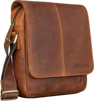 Herren-Umhängetasche braun - Kleine Vintage Schultertasche - 8,4 Zoll Messenger-Bag - Tablettasche aus echtem Büffel-Leder 'Finn'
