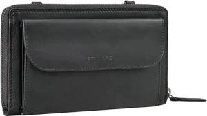 'Grecia' Clutch Leder Vintage Damen Klein Abnehmbare Handschlaufe und RFID Schutz Echtleder Partytasche Geldbeutel Damen Groß, Farbe:schwarz