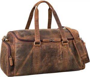 'Jermaine' Vintage Leder Reisetasche Groß Handgepäck Weekender Damen Herren Duffle Bag Echt Leder-Tasche Travel Bag zum Umhängen Wochenend Tasche mit Schuhfach, Farbe:Colorado - braun