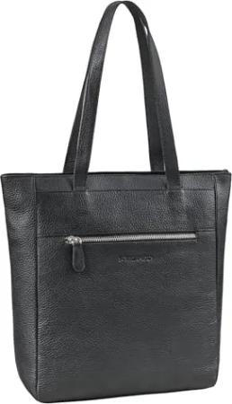 'Nara' Zeitlose Leder Shopper Damen Handtasche zum Umhängen groß Vintage Tote Bag Ledertasche Schultertasche Elegante Damen-Tasche Uni Arbeitstasche Echtleder, Farbe:schwarz