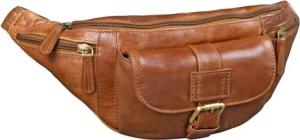 'Damian' Große Bauchtasche Leder Vintage Gürteltasche für Herren Damen Crossbody Hip Bag Moderne Hüfttasche für Reisen Jogging Festival aus Echtem Leder, Farbe:Porto - Cognac