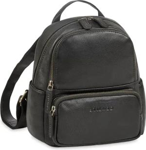 'Sue' Rucksack Damen Leder Elegant - Kleiner Damenrucksack modern - Cityrucksack Daypack Mini Tagesrucksack diebstahlsicher - Lederrucksack Frauen Echtleder, Farbe:schwarz