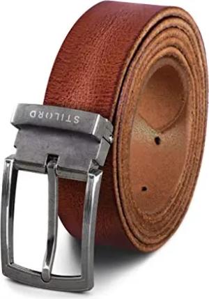 Vintage Echtleder Gürtel Herren Damen Retro Kürzbar Universal Ledergürtel Büffelleder, Farbe:veneto - braun | Schnalle gebürstet silbern I, Größe:Universal 80-130 cm