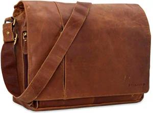 Vintage Umhängetasche Leder groß für Herren Damen 15.6 Zoll Laptoptasche Unitasche Bürotasche moderne Aktentasche aus echtem Büffelleder