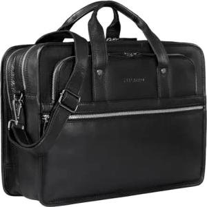 "Jeffrey Lehrertasche Aktentasche Leder Große Vintage Ledertasche zum Umhängen 15.6 Zoll Laptop Tasche für Schule Uni Business Trolley Aufsteckbar Farbe:princeton - schwarz