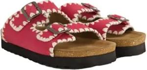 Damen große Größen Übergrößen Plus Size Leder-Pantolette, Kantenstickerei, Kork-Tieffußbett neon pink 44 840213528-44
